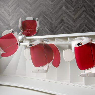 Las sillas salvaescaleras curvas están diseñadas para adaptarse a escaleras que presentan giros, curvas o cambios de pendiente o dirección. A diferencia de los modelos rectos, estas sillas cuentan con un rail personalizado que sigue con precisión la geometría de la escalera, garantizando un trayecto seguro y cómodo. Son ideales para quienes necesitan movilidad en espacios más complejos, permitiendo una gran independencia y seguridad. Su diseño a medida y su instalación especializada hacen que sean una solución perfecta para escaleras con formas únicas.